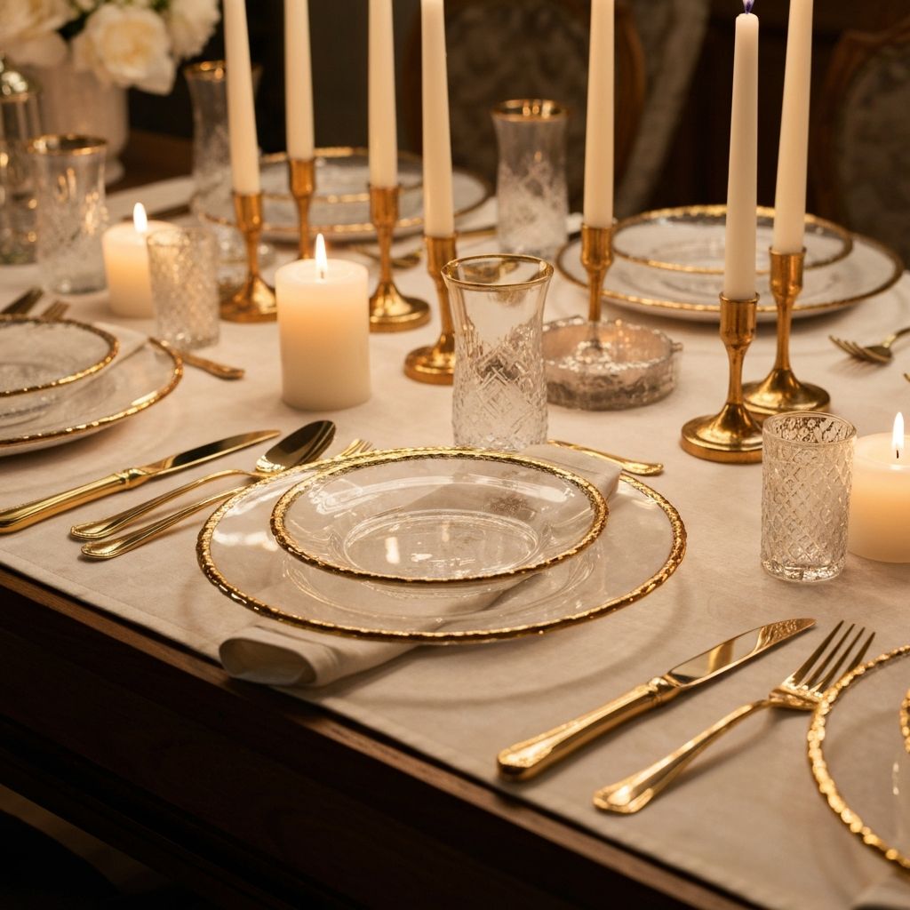 زجاج بنقشات مميّزة مع خط ذهبي أنيق بيرفع مستوى السفرة
